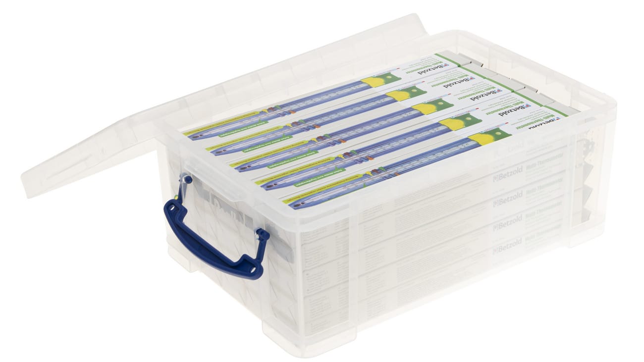 Die praktischen Aufbewahrungsbox mit einem Volumen von 9 Litern sorgt dafür, dass alle Thermometer sicher und ordentlich verstaut sind, wenn sie nicht in Verwendung sind.