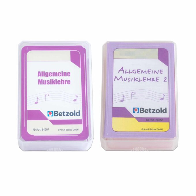 - Lieferumfang: Kunststoffbox mit 36 (Musiklehre 2) bzw. 48 (Musiklehre 1) Übungskarten.