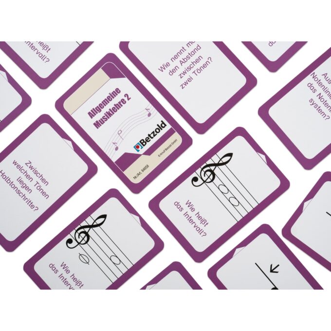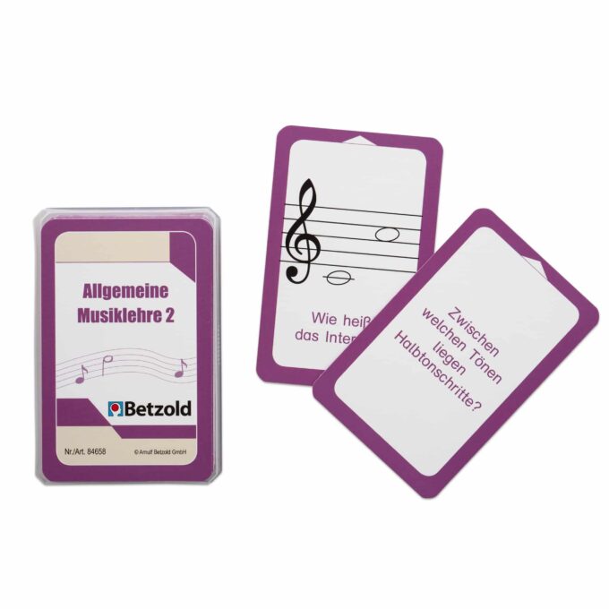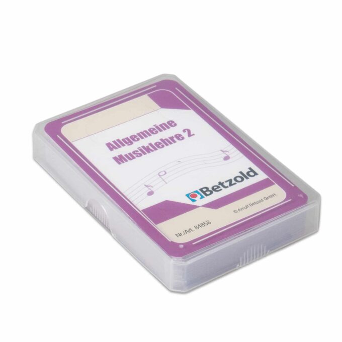 - Lieferumfang: Kunststoffbox mit 36 (Musiklehre 2) bzw. 48 (Musiklehre 1) Übungskarten.
