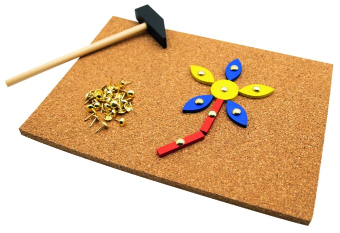 - Inhalt: 5 Korkplatte, 10 Hämmerchen, ca. 200 g Nägel, ca. 600 Holzteile