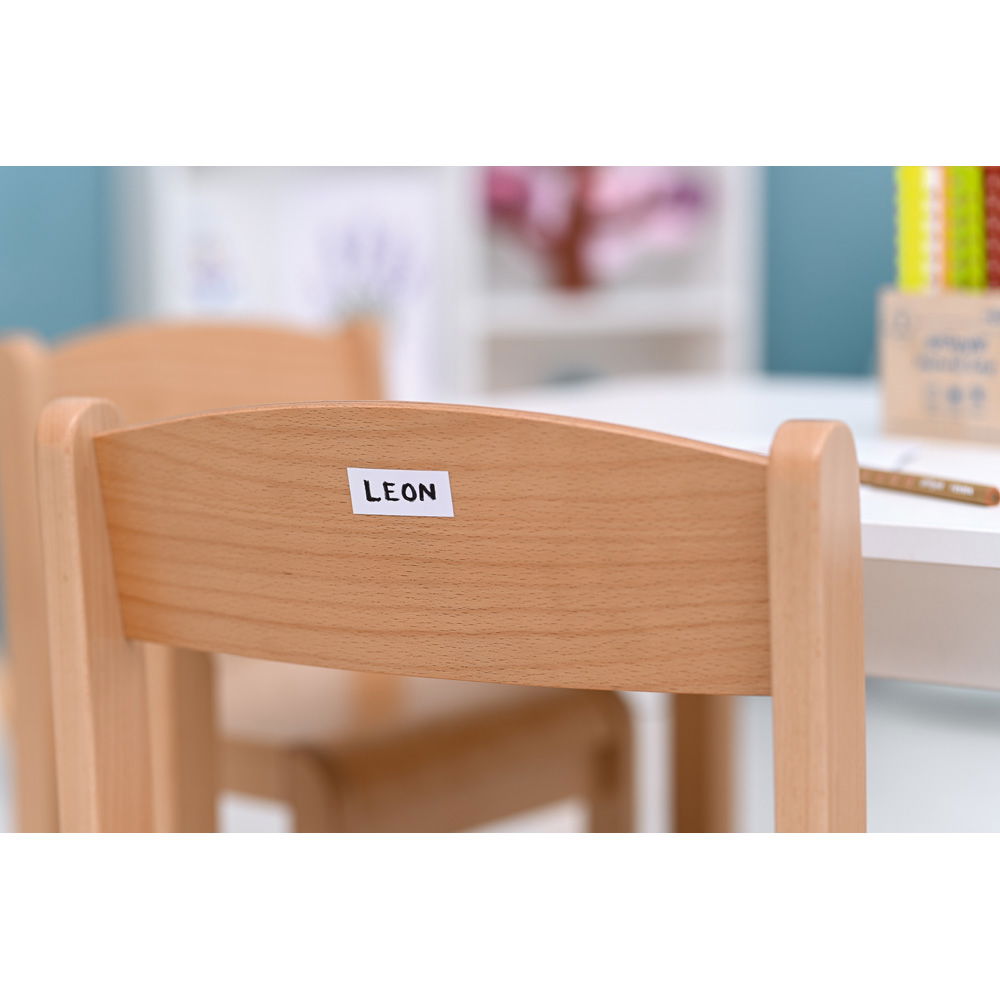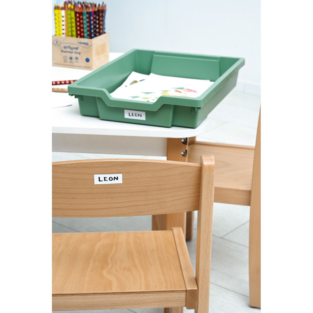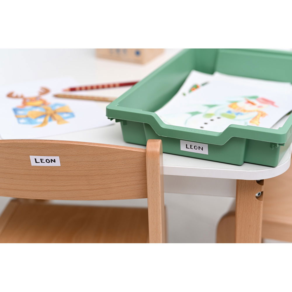 Für eine Kennzeichnung, die den ganzen Tag über gut lesbar bleiben muss, ist die Beschriftung mit einem Permanentmarker ideal. Die Oberfläche der Aufkleber ist so beschaffen, dass die Tinte gut haftet, schnell trocknet und nicht verschmiert. So bleibt der Name auch bei häufigem Kontakt klar erkennbar. - Optimale Größe für eine klare Übersicht