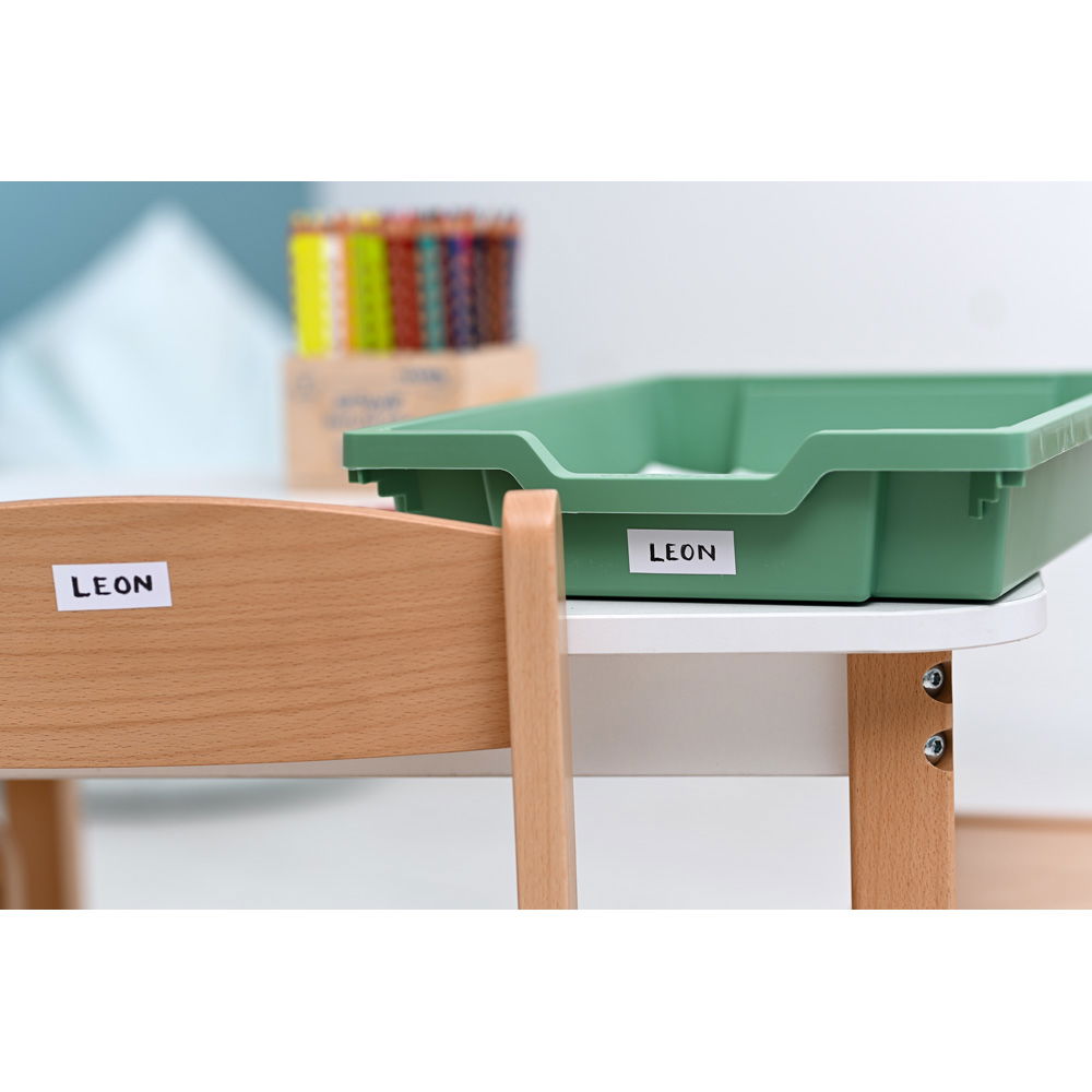 Im Gegensatz zu vorgedruckten Etiketten haben Sie hier die volle Kontrolle. Ob mit einem Permanentmarker für dauerhafte Lesbarkeit oder in Kombination mit Symbolen – Sie gestalten die Beschriftung genau so, wie Sie es benötigen. Das ist besonders praktisch, wenn Namen sich ändern oder die Zuordnung wechselt. - Dauerhafte Kennzeichnung mit Permanentmarker