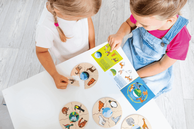 Das NAWITO „Tierwelten“-Puzzle lädt Kinder ein, die Geheimnisse der Tierwelt in verschiedenen Lebensräumen zu entdecken. Beim Puzzeln werden sie spielerisch mit den charakteristischen Merkmalen von Hochgebirge, Savanne, Wüste, Wald, Ozean, Fluss, den Polargebieten und dem Regenwald vertraut und erfahren, welche vier typischen Tiere in jedem dieser Lebensräume zu Hause sind.