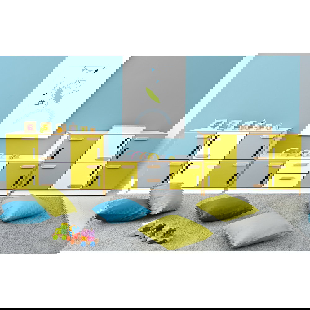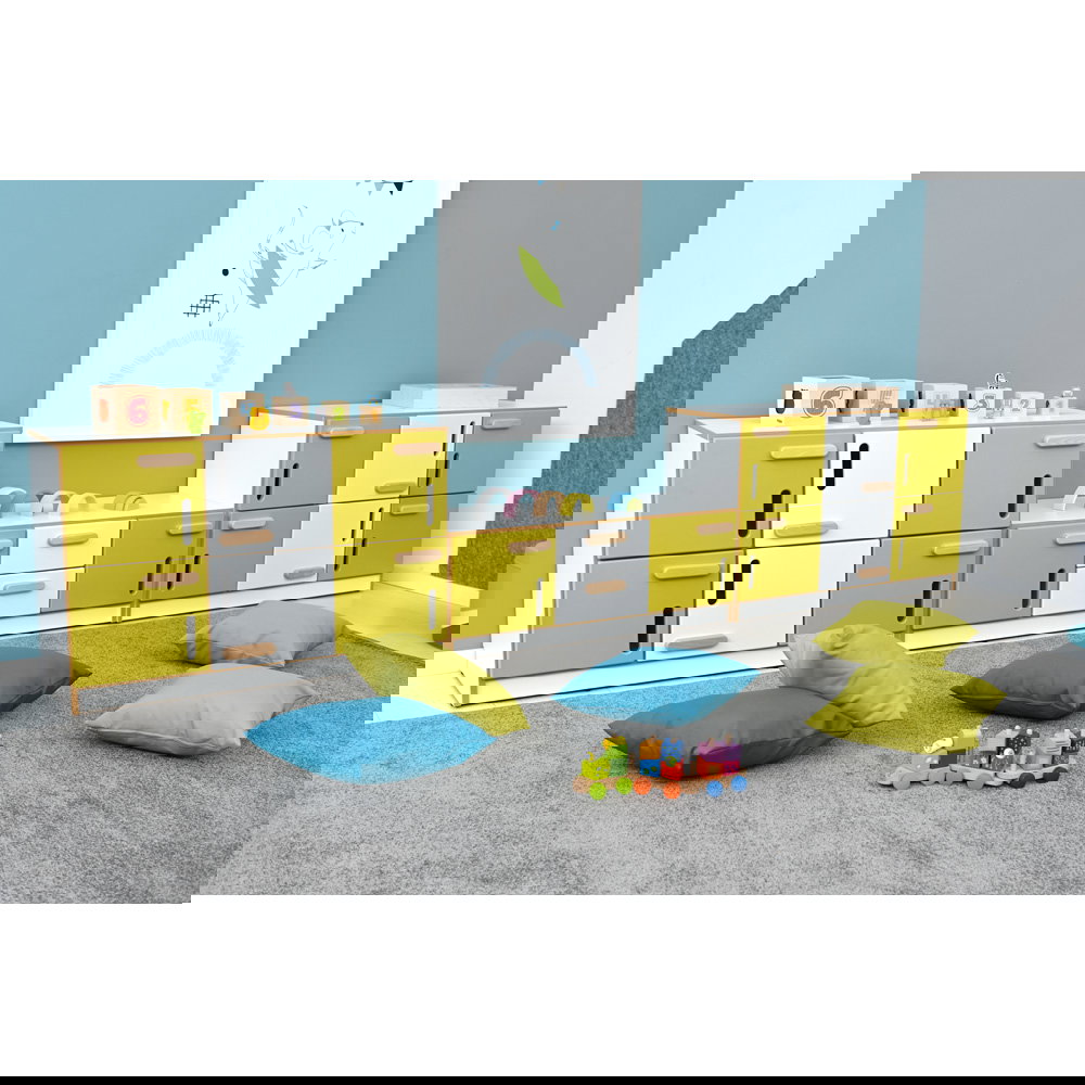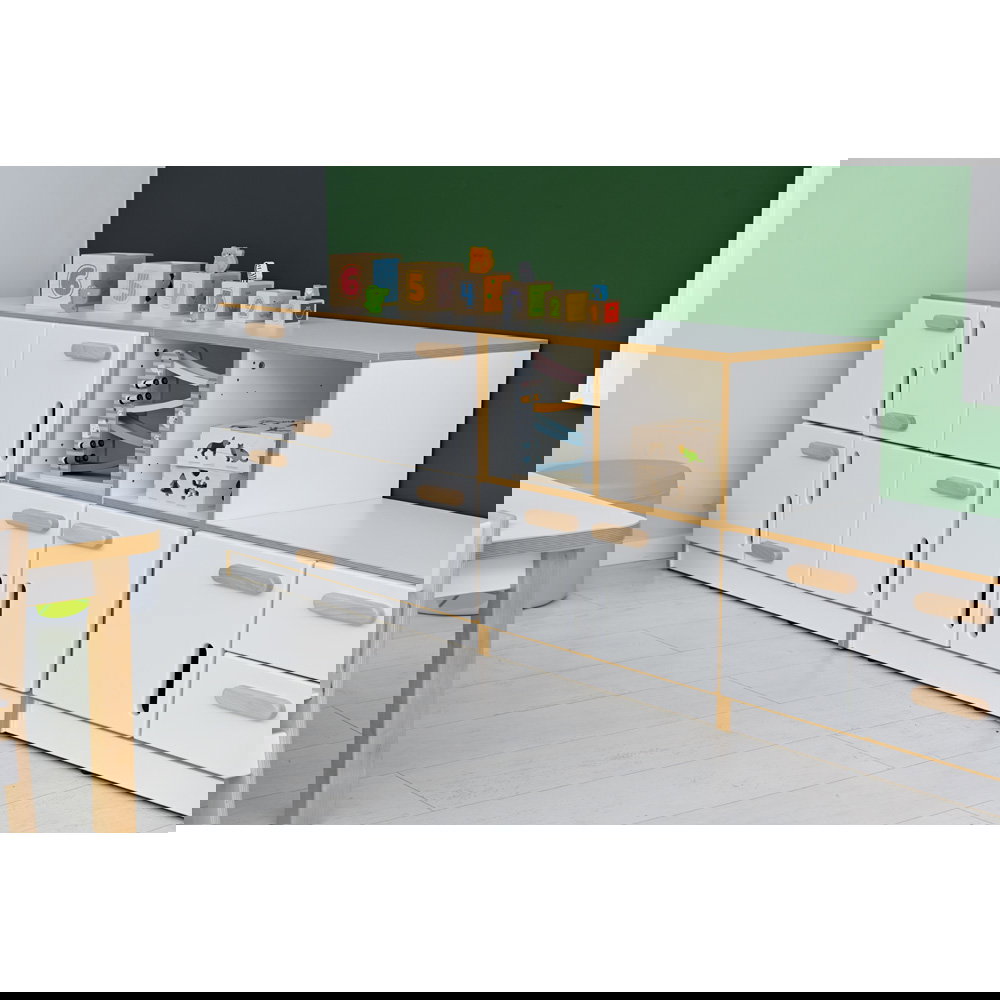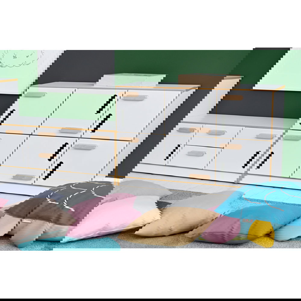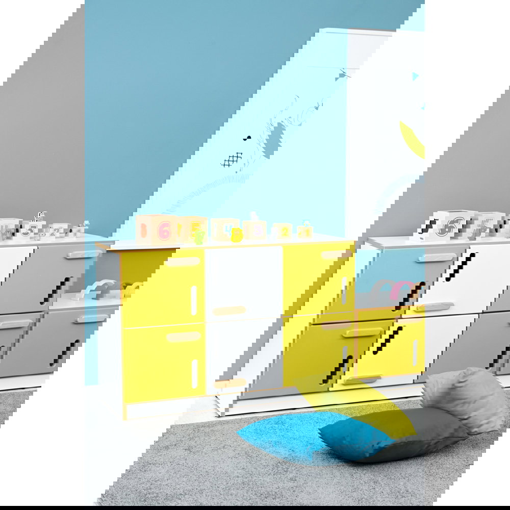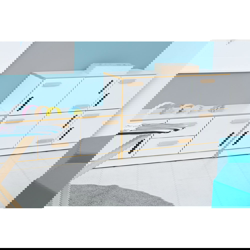 Mit einer Höhe von nur 68 cm ist dieser Schrank ideal für Kinder dimensioniert. Sie können auch die oberen Fächer problemlos erreichen, was die Selbstständigkeit fördert und dazu einlädt, Verantwortung für die eigenen Sachen zu übernehmen. - Flexible Nutzung als Sideboard