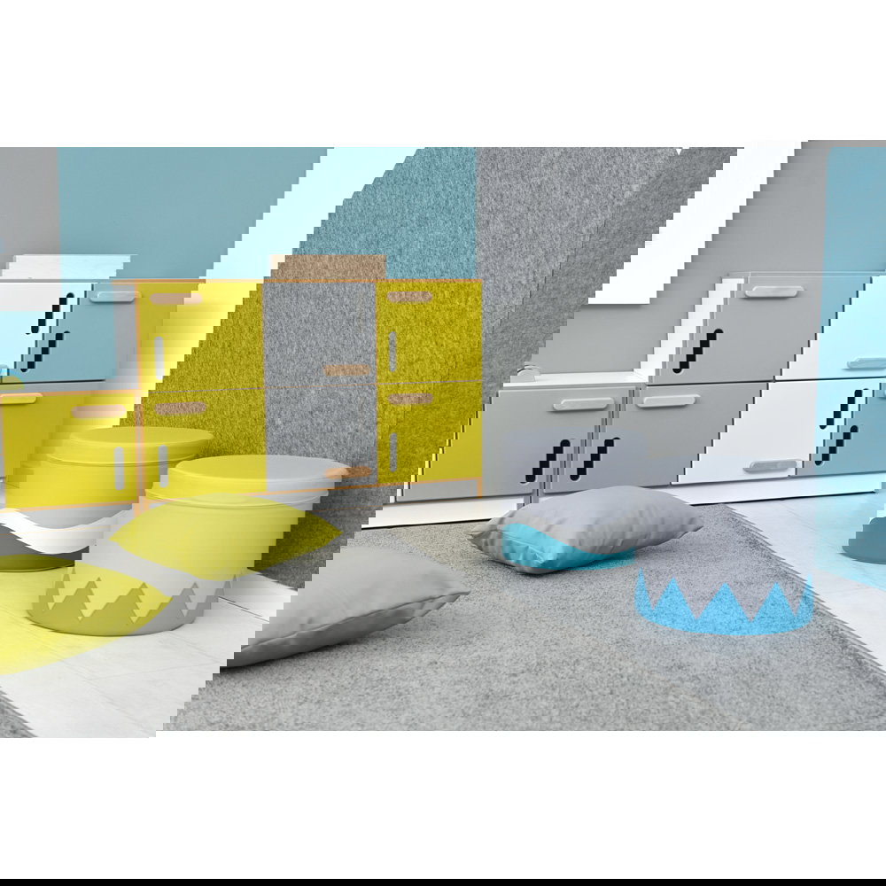 Das strahlende Weiß des Korpus sorgt für eine helle und freundliche Atmosphäre im Raum. Ein stilvolles Detail ist die hochwertige ABS-Kante in Multiplex-Optik, die dem Schrank eine warme, natürliche Note verleiht und gleichzeitig als robuster Stoßschutz dient. Die sechs quadratischen Fächer bieten viel Platz für alles, was im Alltag benötigt wird. Doch der NEA Schrank M ist mehr als nur ein Regal: Er ist ein wandelbares System. Die offenen Fächer lassen sich ganz nach Bedarf mit separat erhältlichen Türen (Größe S) oder praktischen Schubladenboxen ergänzen. So können Sie entscheiden, was sichtbar präsentiert wird und was elegant verborgen bleibt. Ob als Sideboard im Gruppenraum, als Raumteiler oder als klassisches Regal an der Wand – dieser Schrank macht überall eine gute Figur.