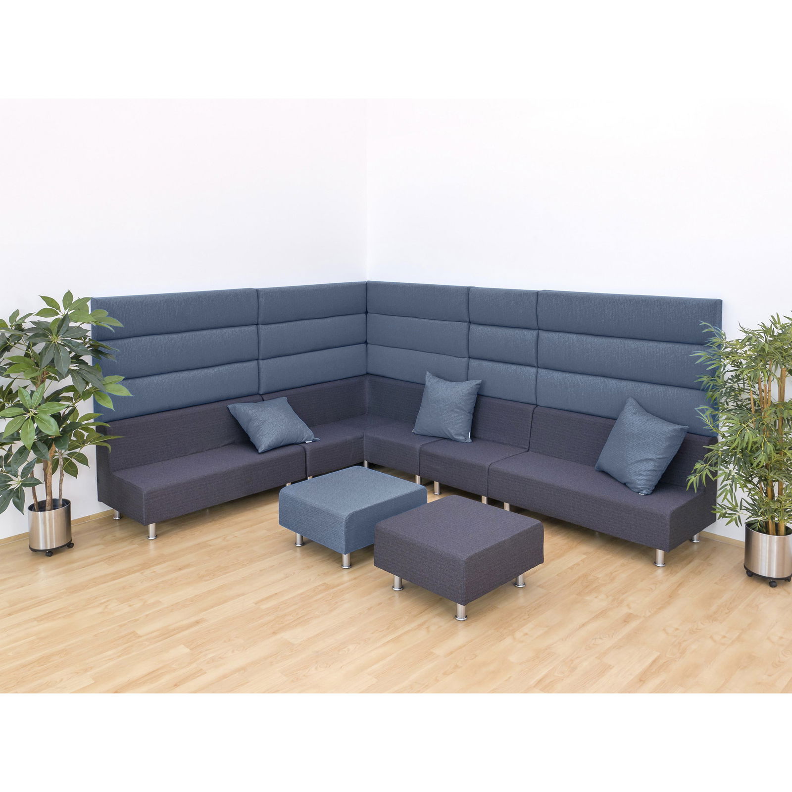 Moderne Lern- und Arbeitsumgebungen leben von Offenheit, doch gerade in belebten Räumen wie Klassenzimmern, Mensen oder Gruppenräumen wird der Geräuschpegel schnell zur Belastung. Das NEO Wandpaneel, 3-reihig, ist die ideale Antwort auf diese Herausforderung. Mit einer Höhe von 90 cm und seiner dreireihigen Polsterung fungiert dieses Wandelement nicht nur als effektiver Schallabsorber, sondern auch als stilvolles Designobjekt. In Kombination mit den Sitzelementen der Flexeo® NEO-Serie verwandelt es einfache Sitzbänke in gemütliche Sofalandschaften mit extrahoher Rückenlehne. So schaffen Sie geschützte Rückzugsorte, die zum konzentrierten Lernen oder entspannten Verweilen einladen, und werten Ihre Räume gleichzeitig optisch und akustisch auf.