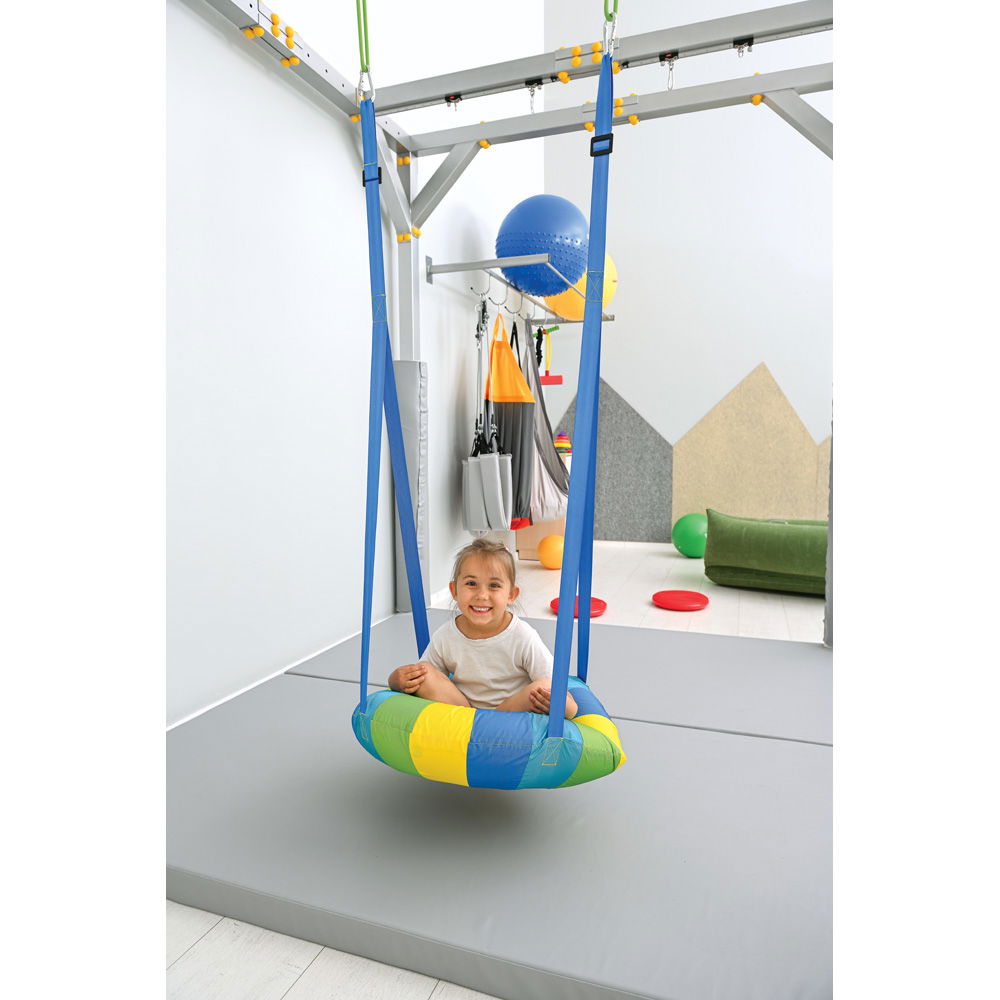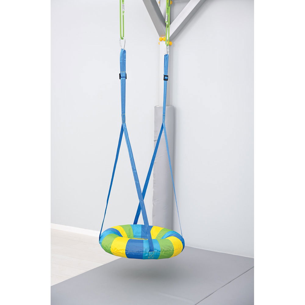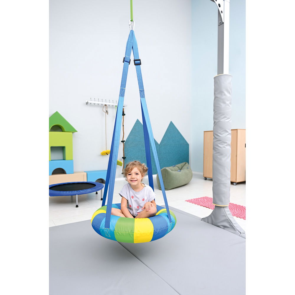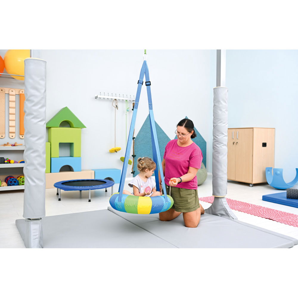 Mit einem großzügigen Durchmesser von 70 Zentimetern bietet die Nestschaukel ausreichend Platz, um es sich allein oder auch zu zweit gemütlich zu machen. Dies eröffnet Möglichkeiten für kooperative Spiele und fördert soziale Interaktionen in einem geschützten Rahmen. Die Handhabung ist dabei denkbar einfach: Eine passende Pumpe zum schnellen Aufblasen des Kissens ist bereits im Lieferumfang enthalten. Dank ihrer hohen Tragfähigkeit von bis zu 100 kg ist die Schaukel äußerst robust und ein verlässlicher Partner im anspruchsvollen Therapiealltag sowie zu Hause.