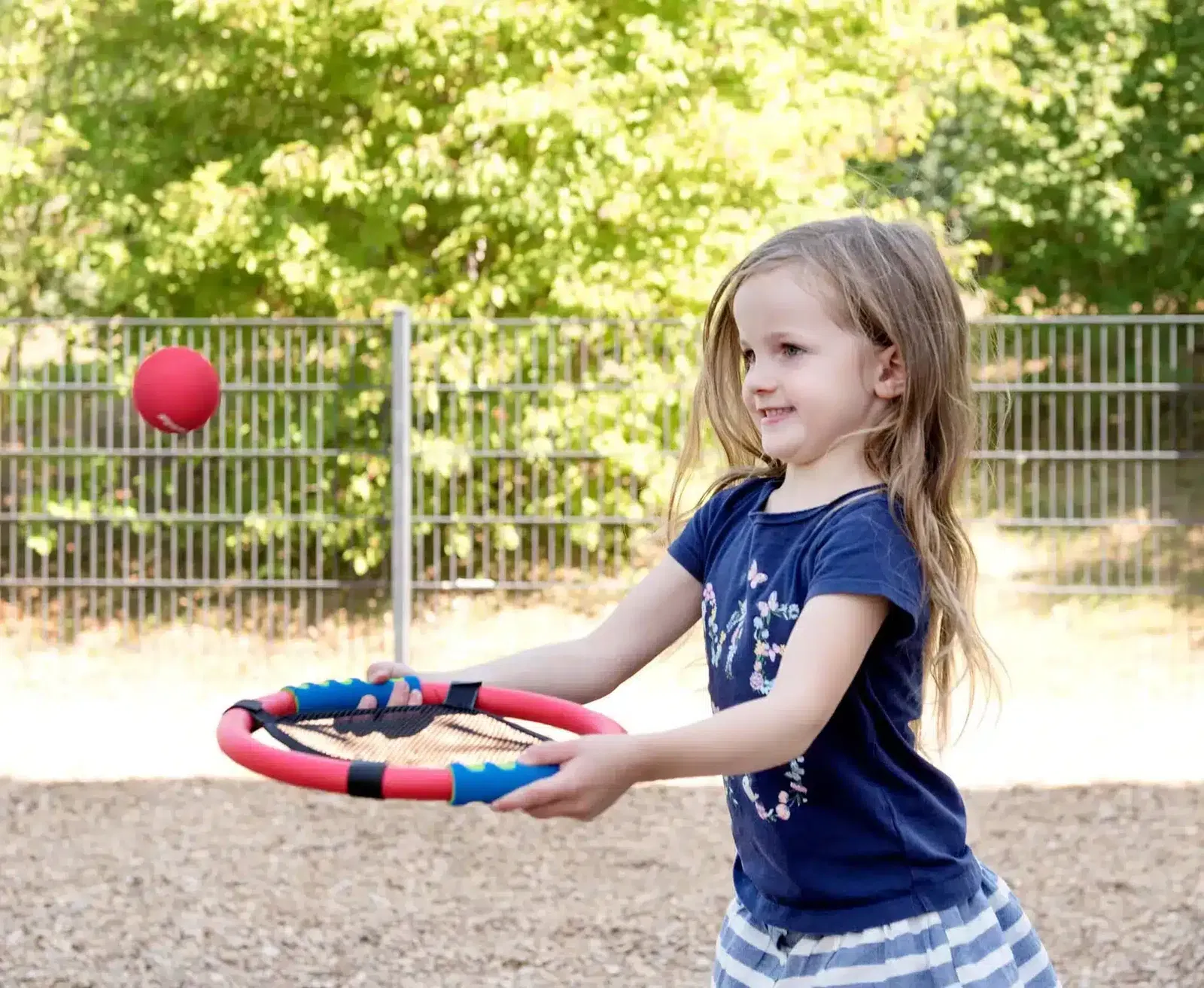 Das innovative Design der Handtrampoline ermöglicht den sogenannten “Trampolineffekt”, der durch das schwarze Gitternetz der Schlagringe entsteht. Dadurch fliegen die Bälle geschmeidig von Spieler A zu Spieler B. Unter Aufsicht können die Kinder spannende Netzball-Matches spielen und dabei Teamgeist und Fair Play lernen!