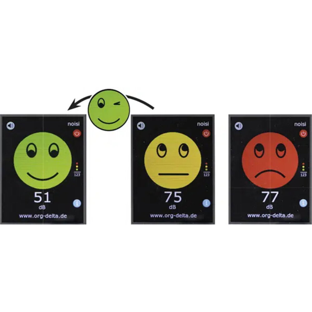 - Anzeigemodi: Wählen Sie aus drei Darstellungsformen: Smiley, klassische Ampel oder detaillierter Lautstärkepegel