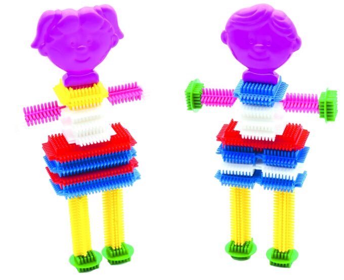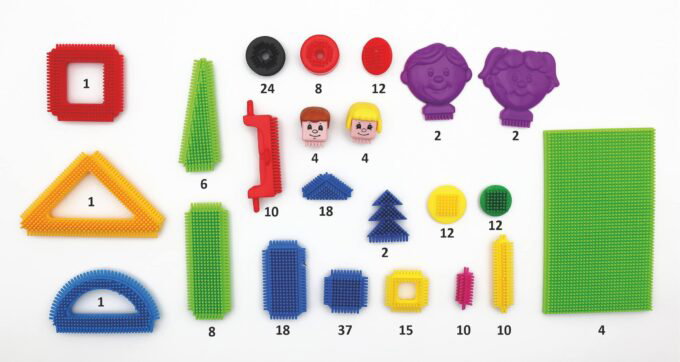 Die Nopperteile lassen sich leicht miteinander verbinden, denn sie „docken“ ähnlich wie Kletten an. Kinder können ohne viel Aufwand die verschiedenen Elemente zusammenstecken und im Handumdrehen beeindruckende Konstruktionen erstellen. Mit so vielen grundlegenden Formen – Köpfen, Rechtecken, Dreiecken, Quadraten, Stäben, Achsen, Scheiben, Grundplatten, Rädern, Fenstern und Würfeln – ermöglicht das Set vielseitige Spiel- und Lernerfahrungen. Ob die Kleinen ein tolles Fahrzeug bauen oder sich ihre eigene Welt schaffen, die Möglichkeiten sind schier endlos!