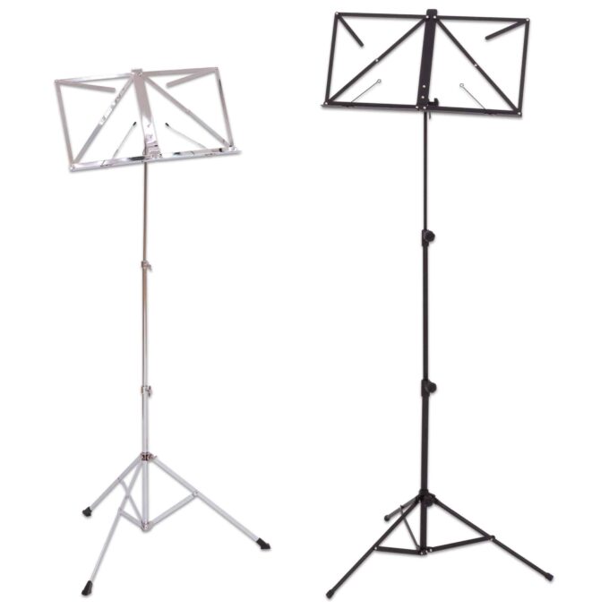 Durch die zwei Farboptionen – klassisches Schwarz oder elegantes Chrom – fügt sich der Notenständer perfekt in jede Umgebung ein, sei es auf der Bühne oder im Proberaum. Dank seiner platzsparenden Klappfunktion ist er leicht zu transportieren und ideal für mobile Einsätze. Egal, ob Anfängerin, Fortgeschrittener oder Profi, dieser Notenständer ist perfekt auf Ihre Bedürfnisse abgestimmt und ein langlebiger Begleiter beim Musizieren.