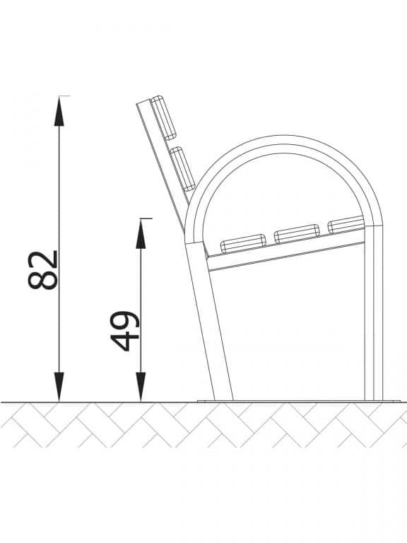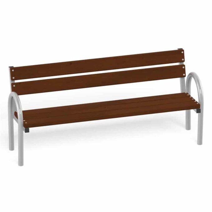 - Material: Die Struktur besteht aus runden Stahlrohren. Sitz und Rückenlehne bestehen aus Holzbrettern. Stahlelemente durch Pulverbeschichtung gegen Korrosion geschützt. Holzelemente geölt oder mit bunter Glasur überzogen. Alle Fittings und Anschlüsse sind witterungs- und UV-beständig.