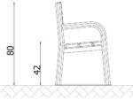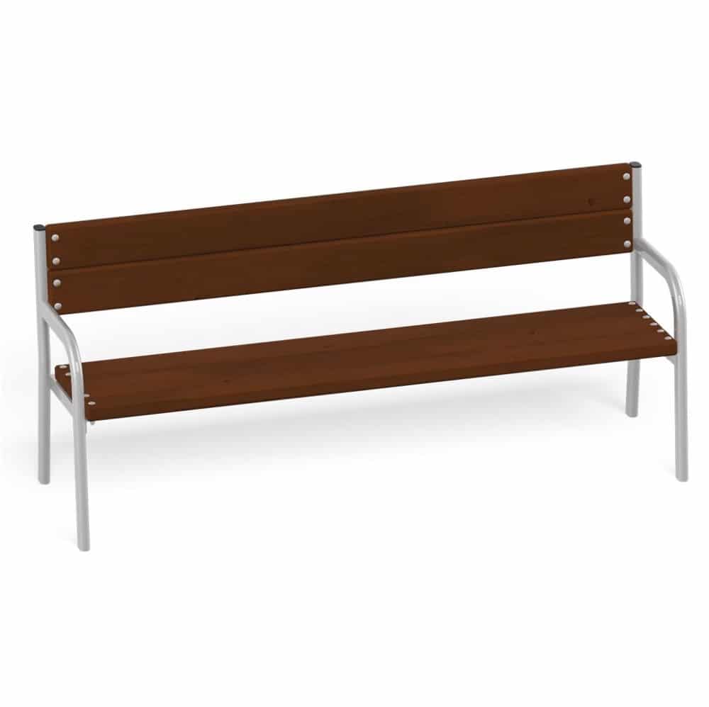 - Material: Die Struktur besteht aus runden Stahlrohren. Sitz und Rückenlehne bestehen aus Holzbrettern. Stahlelemente durch Pulverbeschichtung gegen Korrosion geschützt. Holzelemente geölt oder mit bunter Glasur überzogen. Alle Fittings und Anschlüsse sind witterungs- und UV-beständig.