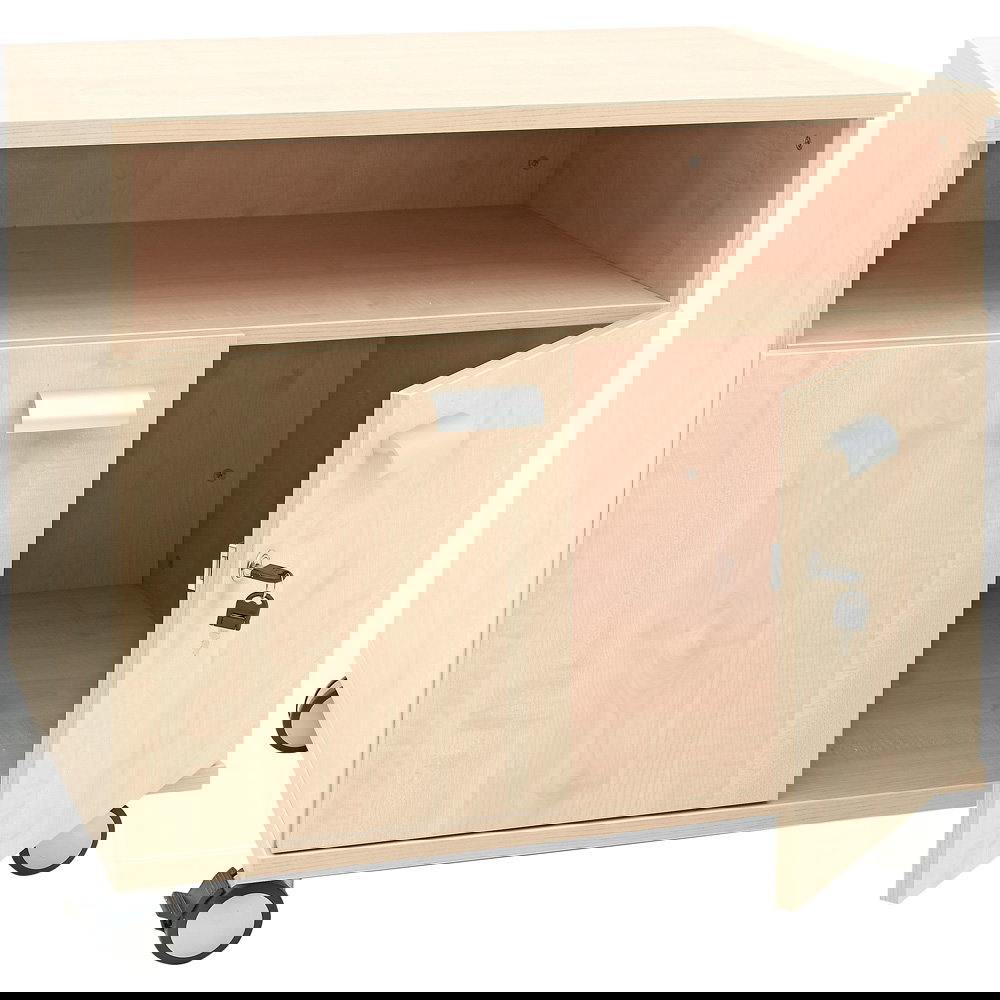 Funktionale Möbel müssen nicht langweilig aussehen. Mit seiner Ahorn-Optik und den klaren Linien passt der Unterschrank perfekt zu den Schreibtischen und Schränken der OPTO-Serie. So integrieren Sie technische Notwendigkeiten elegant in Ihr Raumkonzept.