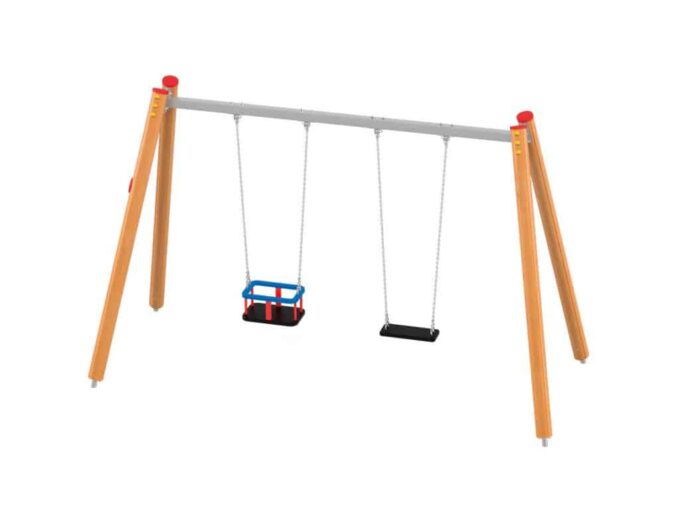 Eine traditionelle Schaukel aus hochwertigsten Materialien, entworfen für zwei Kinder. Sitze können durch einen Korbsitz und einen Korb mit Kettenschloss ersetzt werden. Bei Doppelschaukeln ist es möglich, einen Vogelnestsitz zu installieren.