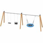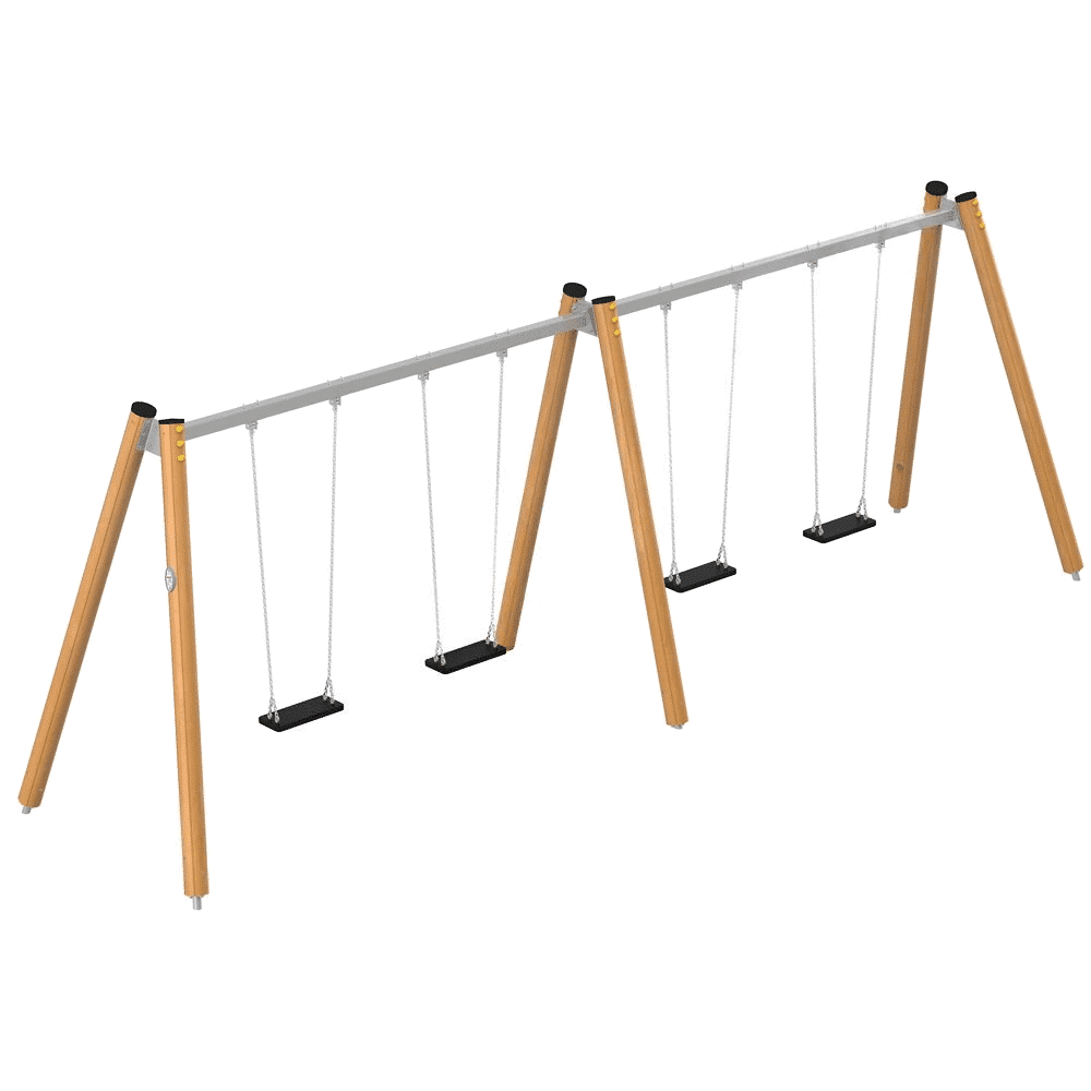 Die Orbis H 4er-Schaukel ist robuste gefertigt, um den höchsten Sicherheitsstandards gerecht zu werden. Mit der Wahl zwischen stabilen Holzpfosten (EPZ) oder Metallpfosten (MPN) können Eltern die ideale Variante für ihren Spielplatz auswählen.