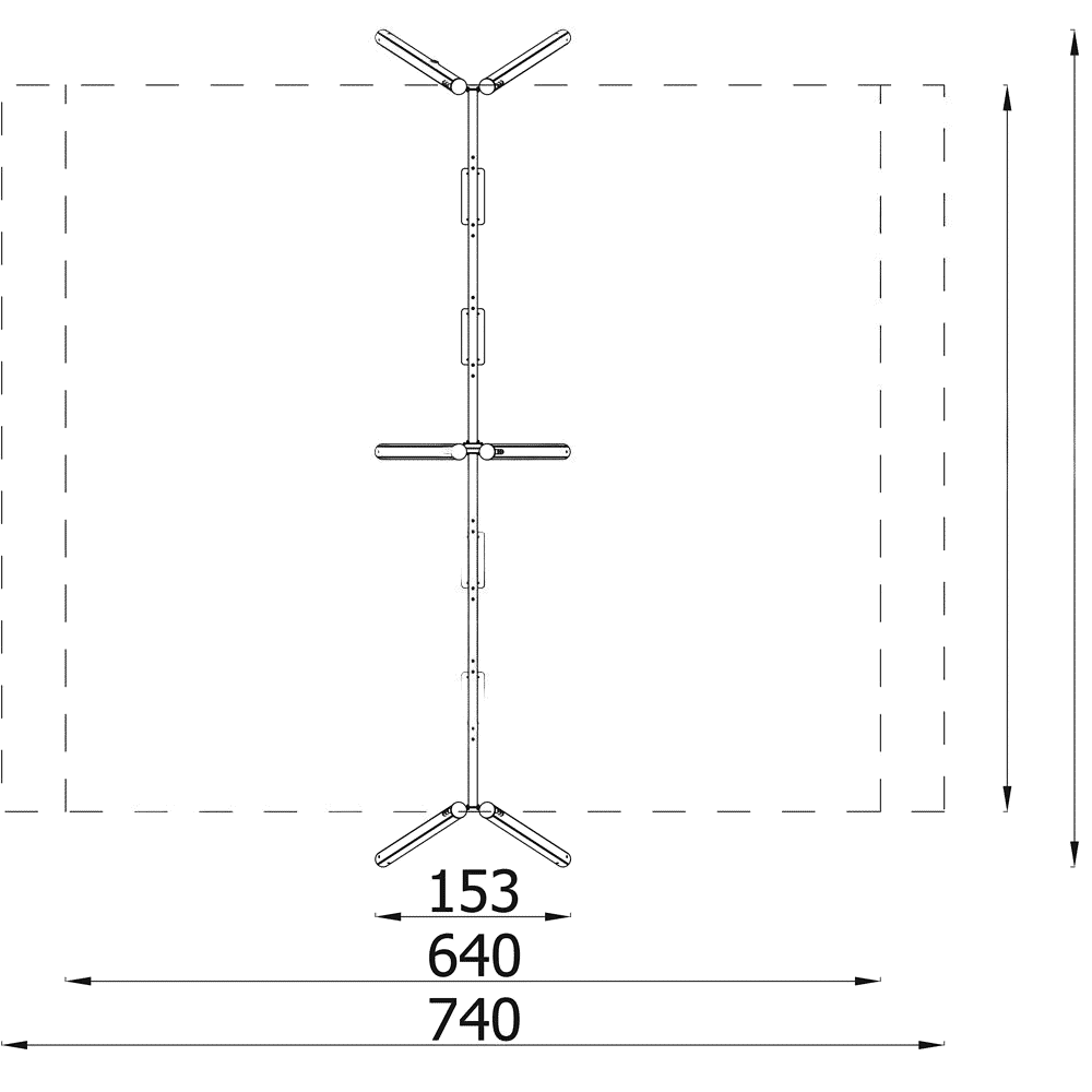 - Sicherheitsbereich: 570 x 740 cm (Fläche: 42,5 m²)