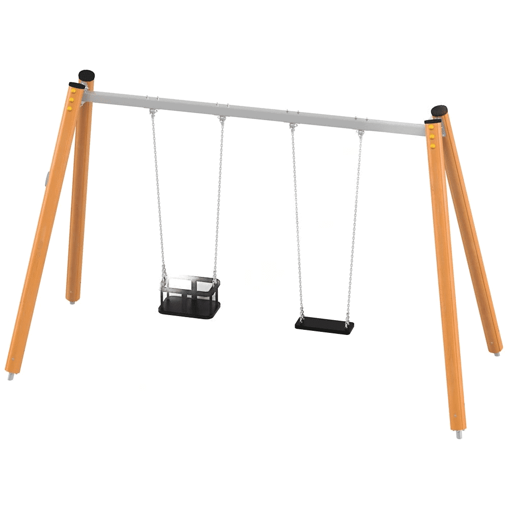 Die Orbis H Doppelschaukel wird aus erstklassigen Materialien gefertigt, die sowohl Stabilität als auch Sicherheit garantieren. Bei der Wahl zwischen robusten Holzpfosten (EPZ) und Metallpfosten (MPN) können Sie die perfekte Variante auswählen. Die eckigen Holzpfosten (Ø 120 mm) sind aus mehrfach verleimtem Holz gefertigt und auf verzinkten Pfostenschuhen montiert, um den Kontakt mit dem Boden zu vermeiden.