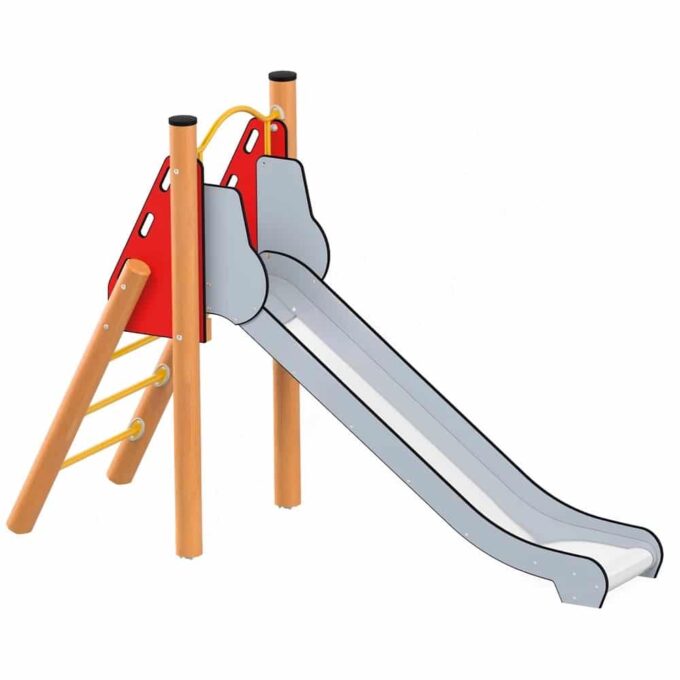 Hergestellt aus excellenter HDPE-Platte, einem pulsierenden Metallgestell und einer Rutsche aus Edelstahl, erfüllt sie die strengen Sicherheitsanforderungen gemäß DIN EN 1176. Der Rutschvorgang wird durch die robuste Konstruktion und die hohe Qualität der Materialien sicher und angenehm gemacht.