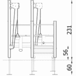 - Holzpfosten (rund, Ø 120 mm) aus mehrfach verleimtem Holz mit Längsfräsung, montiert auf verzinkten Pfostenschuhen, um den Kontakt mit dem Boden zu verhindern.