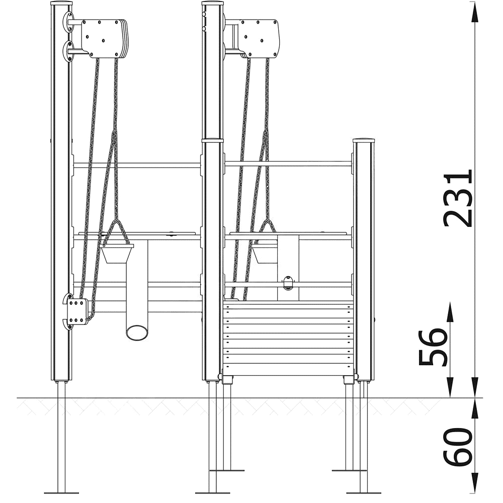 - Seilzüge mit Eimern und Ketten aus Edelstahl, die für eine lange Nutzung ausgelegt sind.