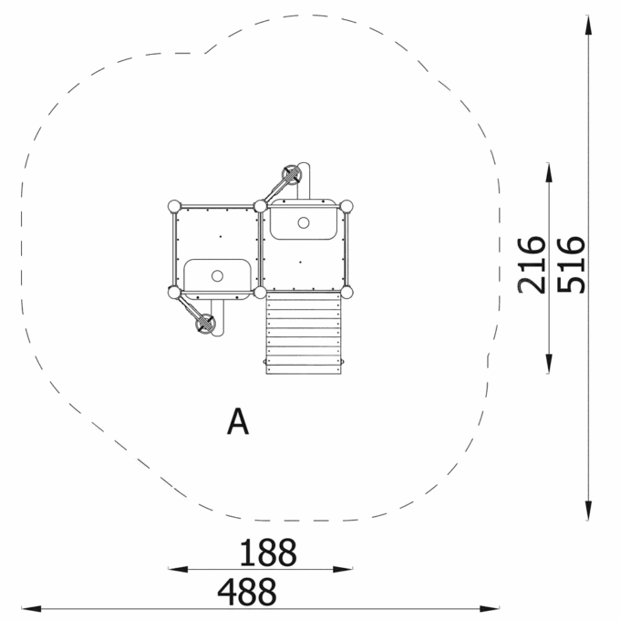 - Sicherheitsbereich: 516 x 488 cm (Fläche: 20,5 m²)