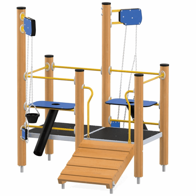 - Podeste aus rutschfester Mehrschichtplatte für sicheres Spielen.