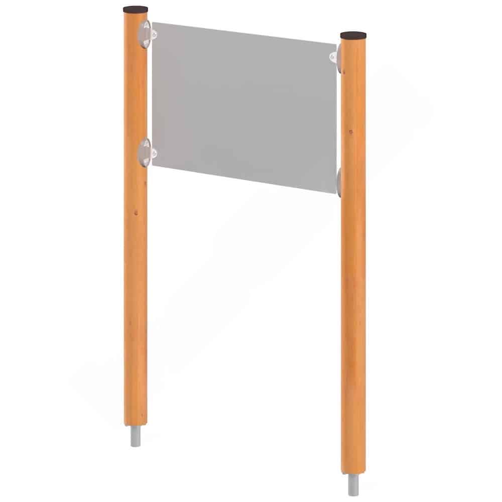- Material: HPL (Stärke: 8 mm), runde Holzpfosten (mehrfach verleimt)