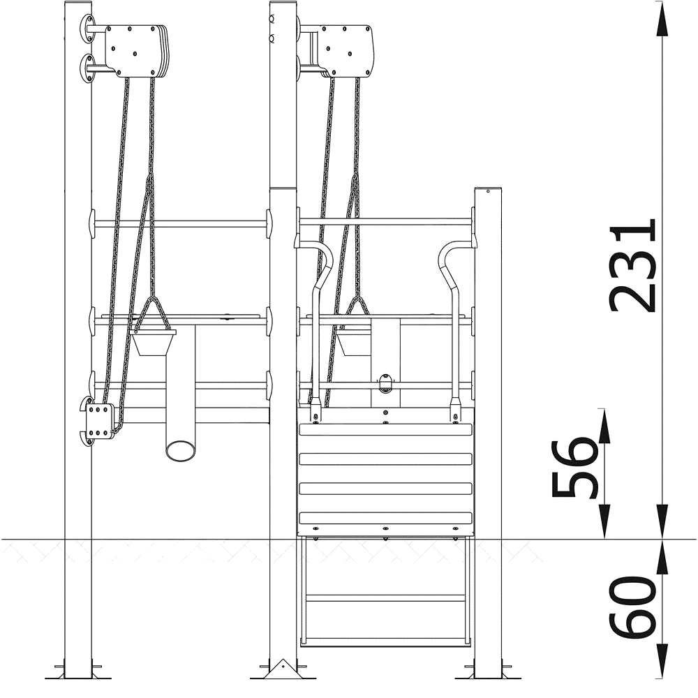 - Zwei Seilzüge mit Eimern, deren Ketten aus Edelstahl sind, garantieren eine lange Lebensdauer.