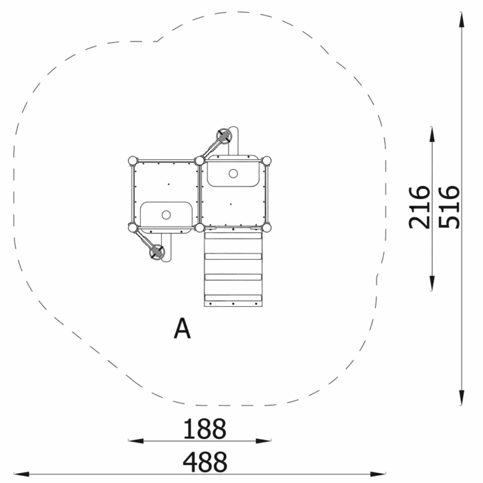 - Sicherheitsbereich: 516 x 488 cm (Fläche: 20,5 m²)