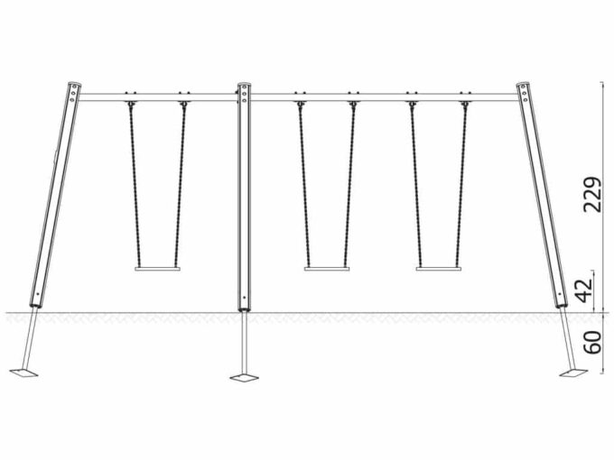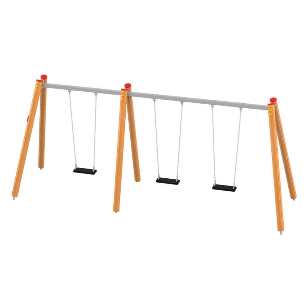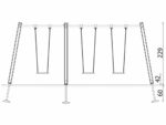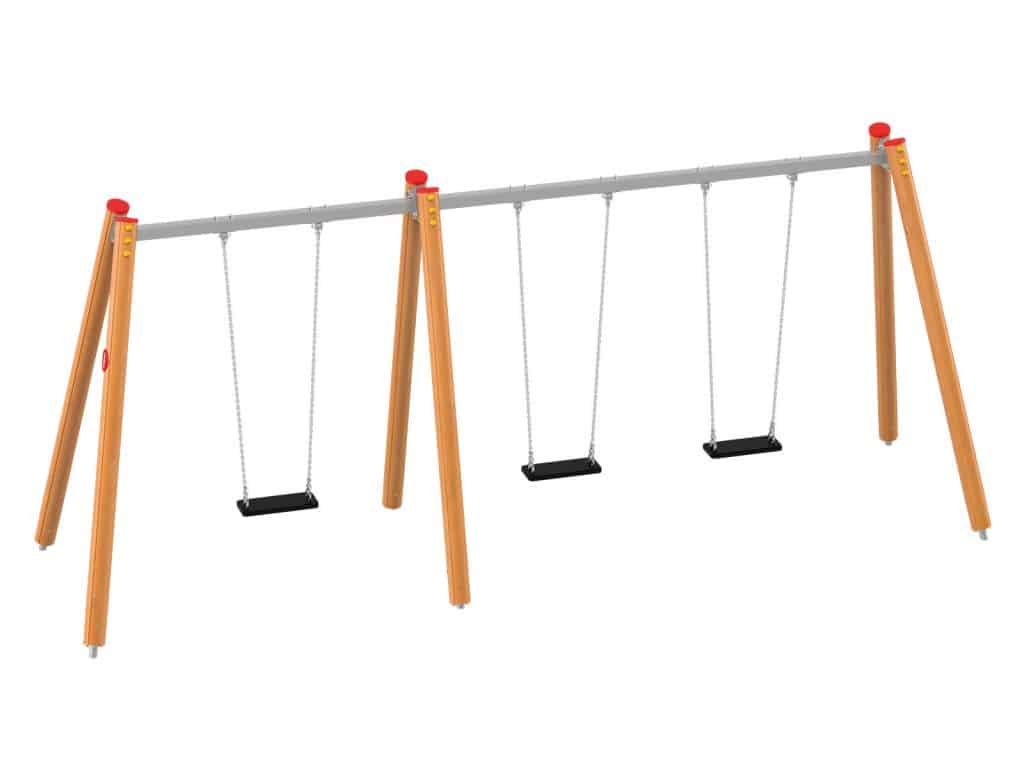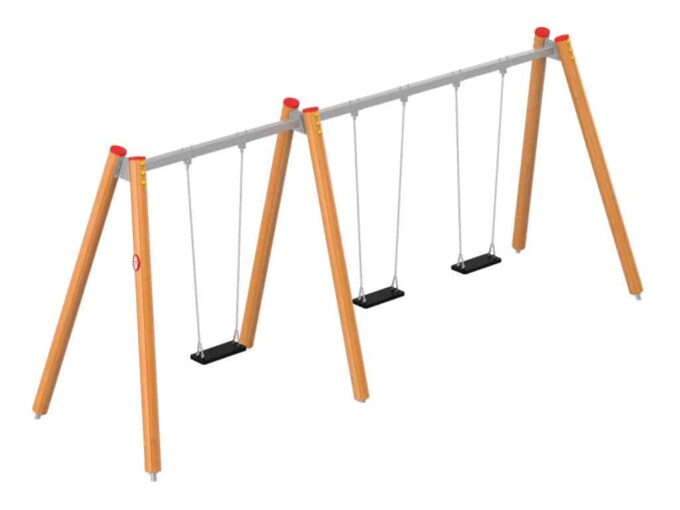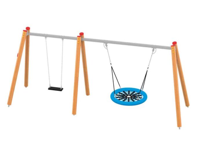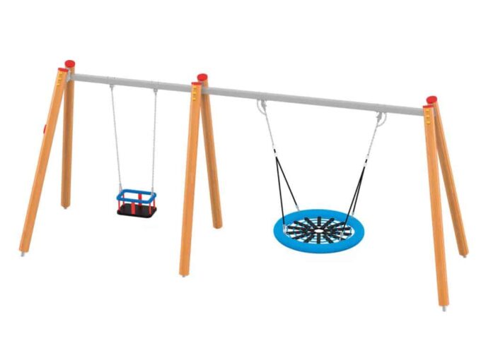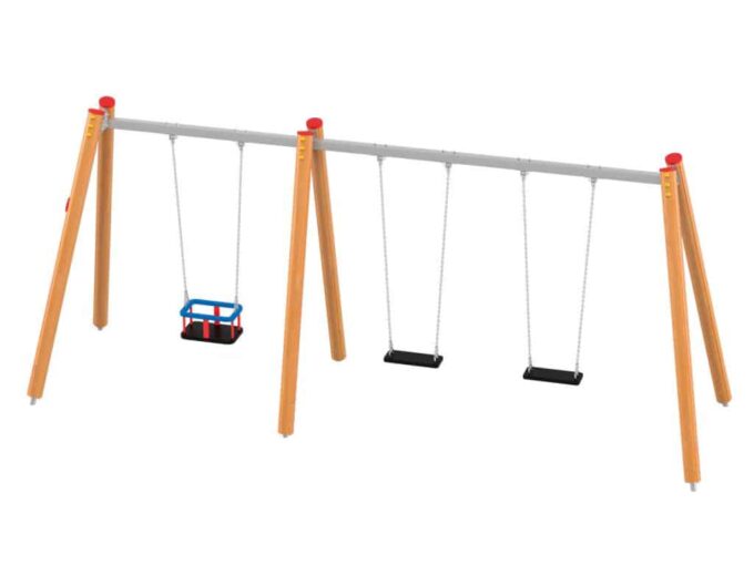 Eine traditionelle Schaukel aus hochwertigsten Materialien, konzipiert für drei Kinder. Die Sitze können durch einen Korbsitz und einen Korb mit Kettenschloss ersetzt werden. Bei Doppelschaukeln ist es möglich, einen Vogelnestsitz zu installieren.