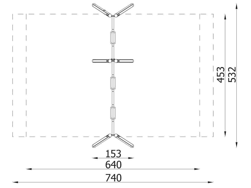 - Geräte-Abmessungen LxBxH: 153 x 532 x 229 cm