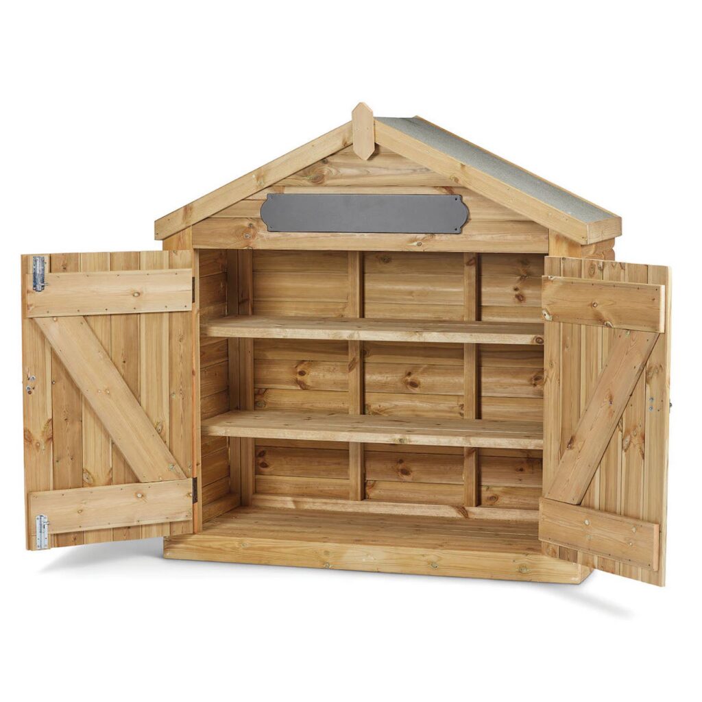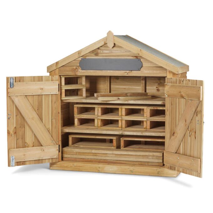 Diese Aufbewahrungshütte ist ein unverzichtbarer Helfer, der den Alltag erleichtert und gleichzeitig pädagogischen Mehrwert bietet.