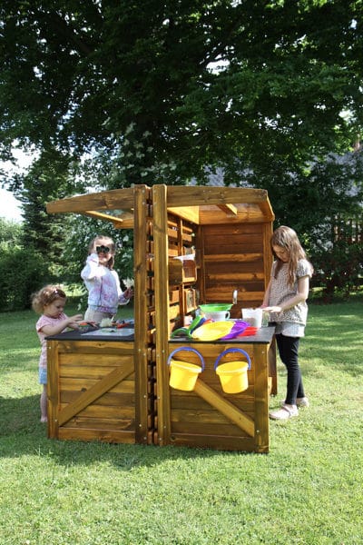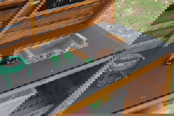 Die Outdoor-Entdeckerstation enthält eine große Auswahl an praktischen Utensilien, die den natürlichen Entdeckungsprozess fördern: