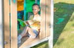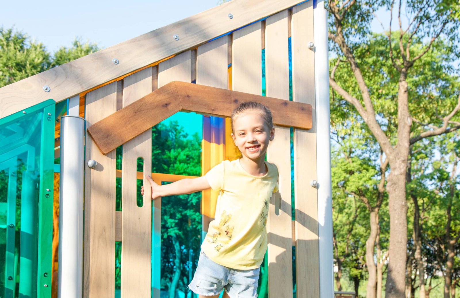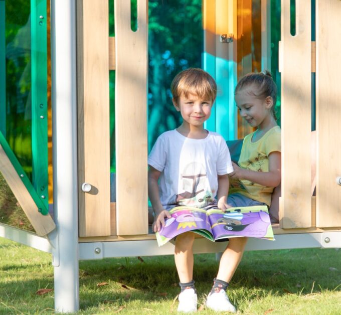 Die Kombination aus natürlichem Robinienholz, stabiler Stahlkonstruktion und bunten Polycarbonat-Scheiben macht das Outdoor-Farben-Haus zu einem echten Blickfang. Wenn Sonnenlicht durch die bunten Flächen fällt, entsteht ein faszinierendes Farbspiel, das Kinder zum Staunen bringt und gleichzeitig ihre Sinne anregt. Dabei erfüllt das Haus höchste Sicherheits- und Qualitätsstandards – getestet nach DIN EN 1176 und mit einer 5-jährigen Herstellergarantie versehen.