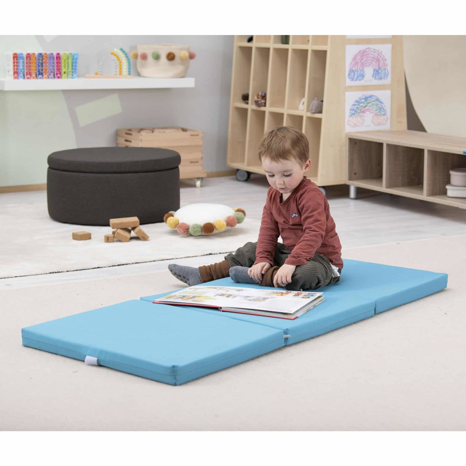 - Überall und sofort einsatzbereit: Ob im Gras, auf der Terrasse, im Gruppenraum oder in der Turnhalle – diese Matte verwandelt jeden Untergrund in eine komfortable Komfortzone. Sie lässt sich mit wenigen Handgriffen auf- und wieder zusammenfalten und ist dank ihres geringen Gewichts leicht zu transportieren. Ideal für spontane Aktivitäten, Ausflüge in den Park oder einfach als flexible Ergänzung Ihrer Raumgestaltung.