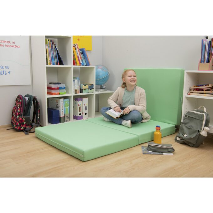 Stellen Sie sich vor, Sie könnten an jedem Ort und zu jeder Zeit eine bequeme und saubere Oase der Ruhe schaffen – sei es für eine spontane Vorlesestunde im Garten, eine Entspannungsübung im Freien oder als gemütliche Liegefläche in der Leseecke. Die Betzold Outdoor-Matte macht genau das möglich. Diese durchdachte, klappbare Matte ist die perfekte Kombination aus Robustheit, Komfort und Flexibilität. Mit ihrem wasserdichten, pflegeleichten Bezug und der komfortablen Schaumstofffüllung bietet sie im Handumdrehen eine einladende Sitz- oder Liegefläche, wo immer Sie sie benötigen. Leicht zu transportieren, platzsparend zu verstauen und für die täglichen Herausforderungen im pädagogischen Alltag konzipiert, wird diese Matte schnell zum unverzichtbaren Begleiter für drinnen und draußen.