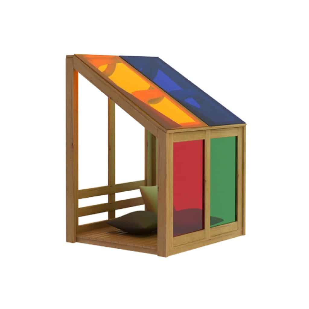 Das Outdoor-Regenbogenhaus ist aus kesseldruckimprägniertem Kiefernholz gefertigt und mit einer natürlichen Hartöl-Lasur versehen, die das Holz schützt und es gleichzeitig atmen lässt. Dadurch bleibt das Regenbogenhaus nicht nur langlebig, sondern behält auch eine ansprechende Optik im Freien. Die Acrylglasfenster sind bruchsicher und wetterfest, was für Sicherheit beim Spielen sorgt.