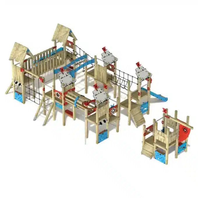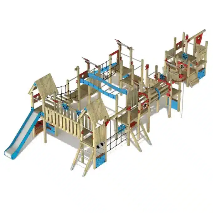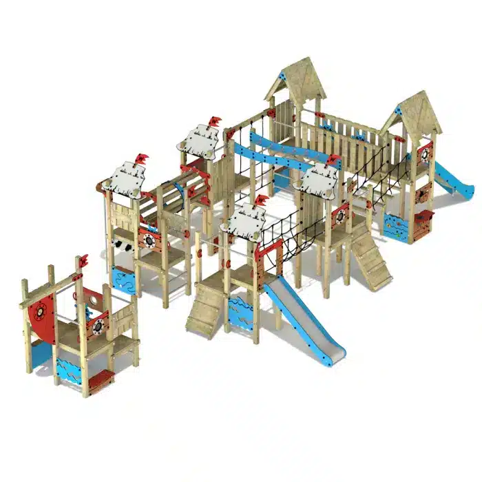 Verleihen Sie Ihrem Spielplatz mit dem Wickey PRO MAGIC Oceanrider einen zusätzlichen Reiz, der sowohl Kinder als auch Eltern begeistert! Dieses professionelle Klettergerüst ist die perfekte Wahl für öffentliche Spielplätze und schafft unvergessliche Erlebnisse. Die PRO MAGIC-Serie bietet Ihnen die Möglichkeit, das ideale Spielgerät individuell nach den verfügbaren Platzverhältnissen auszuwählen. Dabei stehen Sicherheit und Umweltschutz an erster Stelle – die Spielgeräte werden aus europäischem Vollholz gefertigt und die farbigen Elemente bestehen zu 80 % aus recyceltem HDPE-Material.