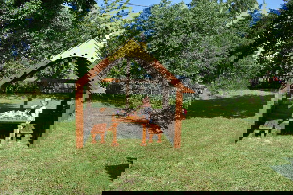 - Schafft eine gemütliche, schattige Spielfläche im Sommer.