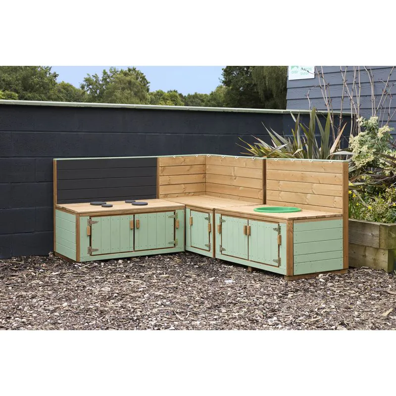 - Produktart: Outdoor-Spielküche / Matschküche im Eckdesign