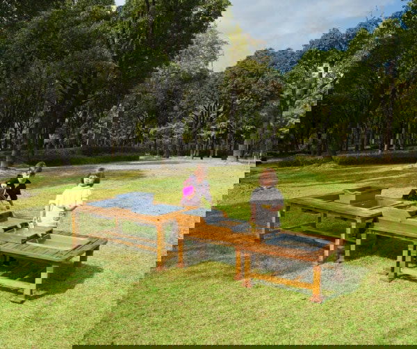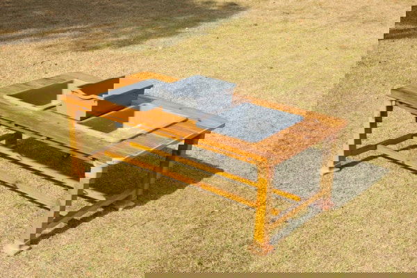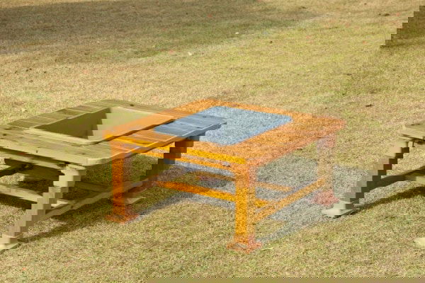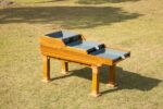 - Material: Matschtisch aus kesseldruckimprägniertem Kiefernholz mit 2-facher Holzwachs-Öl-Lasierung | Holz aus zertifizierter, nachhaltiger Produktion | Standfüße aus wetterresistentem Kunststoff für einen trockenen und sicheren Stand