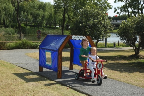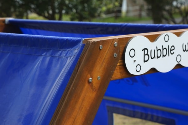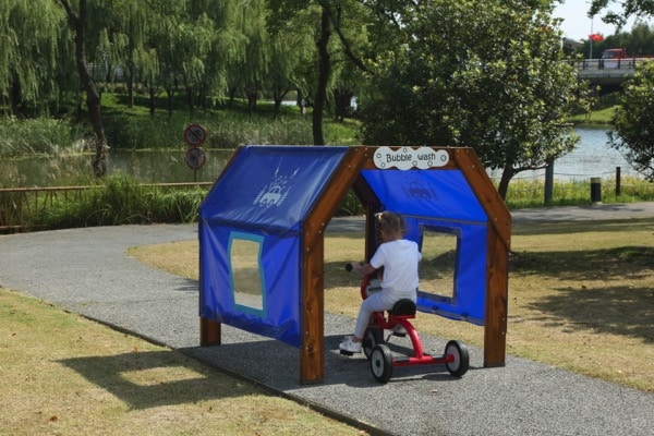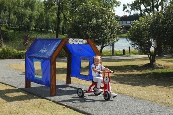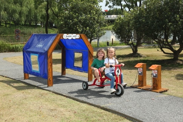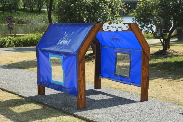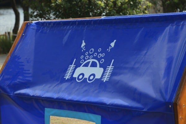 Ob Werkstatt oder Waschstraße – mit diesem Außenspielzeug ist Spielspaß garantiert! Die Outdoor Waschanlage bietet unseren kleinen Auto-Liebhabern nicht nur viel Spielspaß, sie sorgt auch für barrierefreies und sicheres Spielen im Freien. Der Planenstoff an den Seitenwänden ist einfach anzubringen und wird mit Klett fixiert. Die robuste Konstruktion aus imprägniertem Kiefernholz ermöglicht eine lange Lebensdauer, auch unter rauen Witterungsverhältnissen. So kann auch der Gartenschlauch für echten Spielspaß zum Einsatz kommen. Für eine sichere Befestigung werden 4 Anker benötigt. Diese stellen die Konformität mit der DIN EN 1176 sicher.