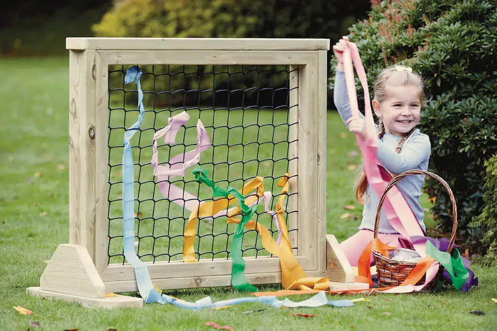 Verwandeln Sie Ihren Außenbereich in ein lebendiges Atelier unter freiem Himmel. Mit dem Outdoor-Webpanel von Millhouse erhalten Kinder einen riesigen, leeren Rahmen, den sie mit ihren eigenen Ideen, Farben und Materialien füllen können. Dieses freistehende Web-Panel ist eine Einladung zum Experimentieren und Gestalten. Kinder können bunte Bänder, glitzernde Stoffreste, Grashalme, biegsame Zweige oder Wollfäden durch die robusten Streben fädeln und so immer wieder neue Muster, Formen und Kunstwerke erschaffen. Es ist eine wunderbare Möglichkeit, die Kreativität zu entfesseln und gleichzeitig grundlegende motorische Fähigkeiten zu schulen.