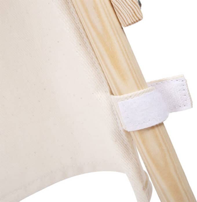 - Großzügiger Innenraum und praktische Details: Im Inneren bietet das Tipi erstaunlich viel Platz zum Spielen, Liegen und Sitzen – auch für mehrere Kinder. Die große Zeltöffnung lässt sich einfach aufrollen und mit Bändern fixieren, um einen einladenden Eingang zu schaffen. Geschlossen dient sie als Vorhang, der mit Klettverschlüssen seitlich befestigt werden kann und für noch mehr Geborgenheit sorgt.