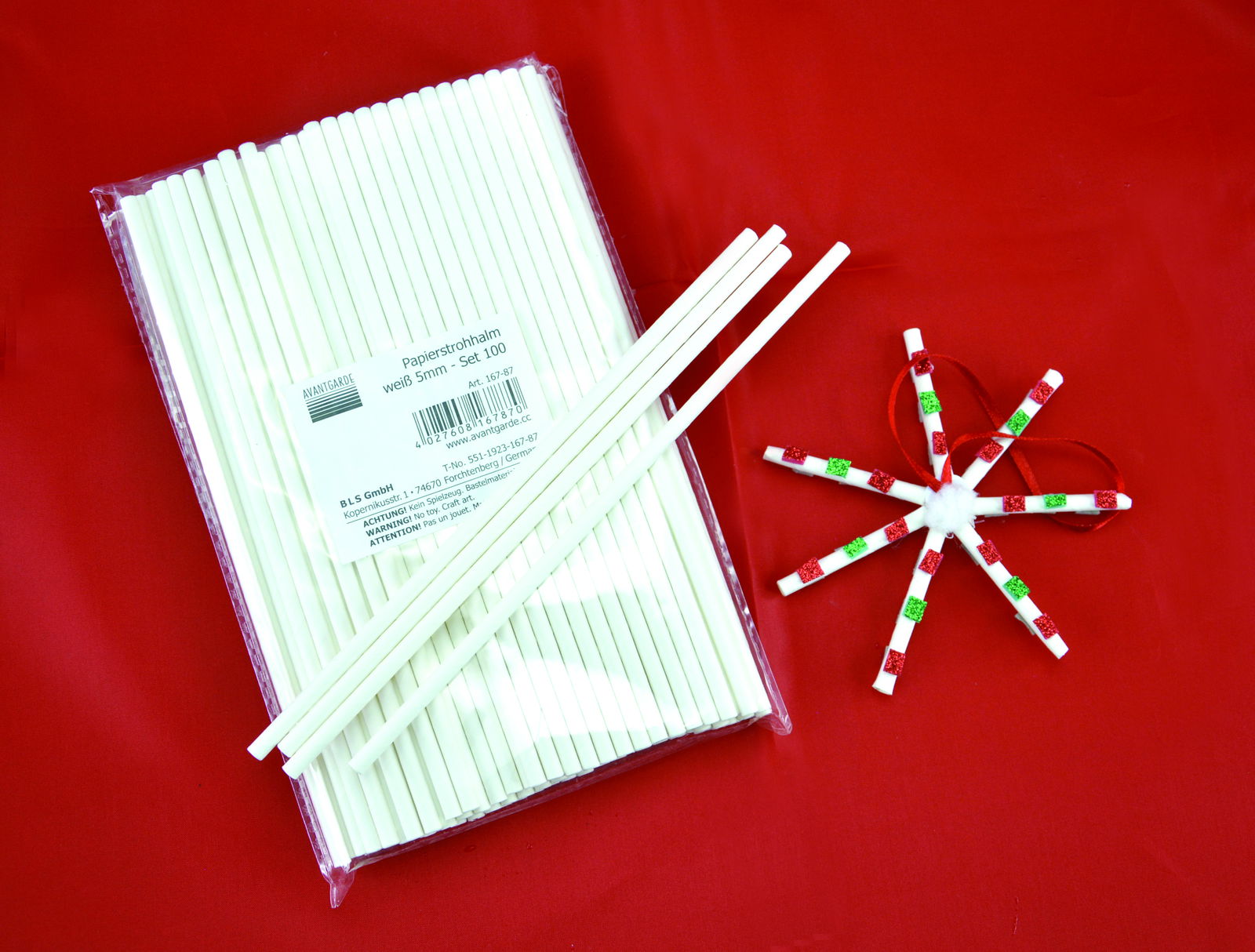 - Kreative Vielseitigkeit: Nutzen Sie die weißen Strohhalme als neutrale Basis für Bastelprojekte. Sie lassen sich leicht bemalen, bekleben oder zu kreativen Dekorationen wie Sternen und geometrischen Formen zusammenfügen.