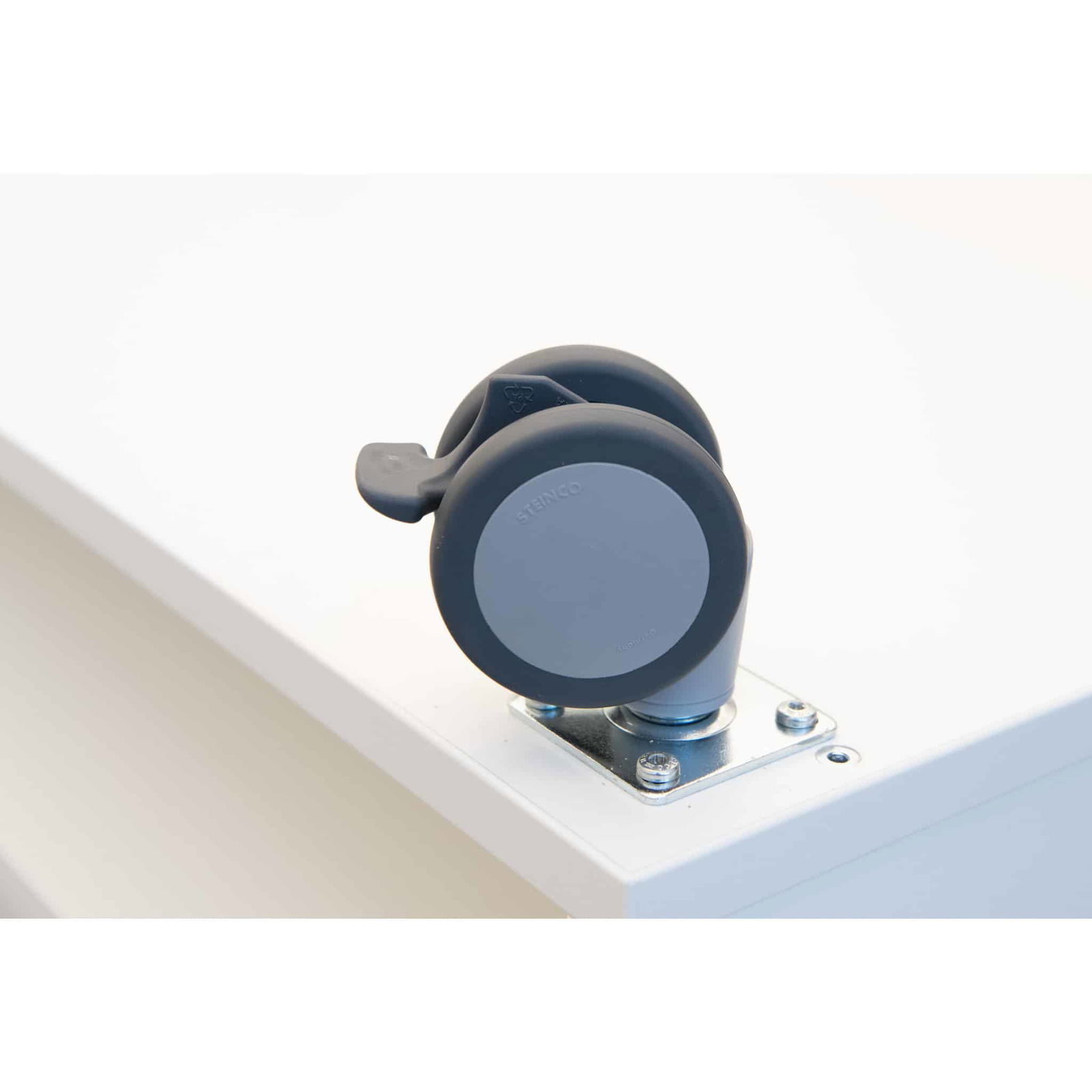 - Sicherer Stand: Zwei der Rollen sind arretierbar, um ein Verrutschen während der Nutzung zu verhindern.