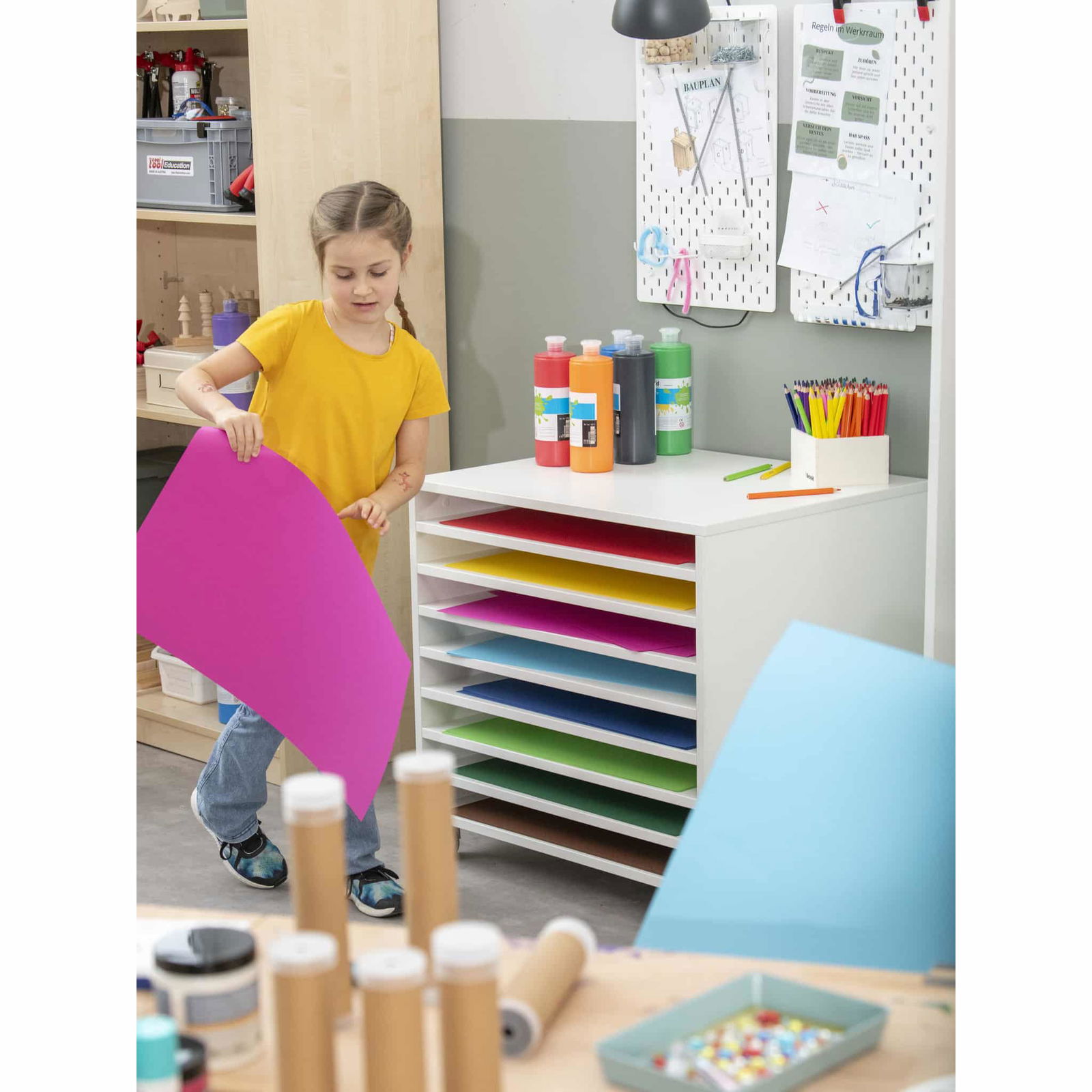 - Bequemer Zugriff: Papierbögen können mit einem Griff entnommen werden, was die Arbeit im Klassenzimmer oder bei kreativen Projekten beschleunigt.