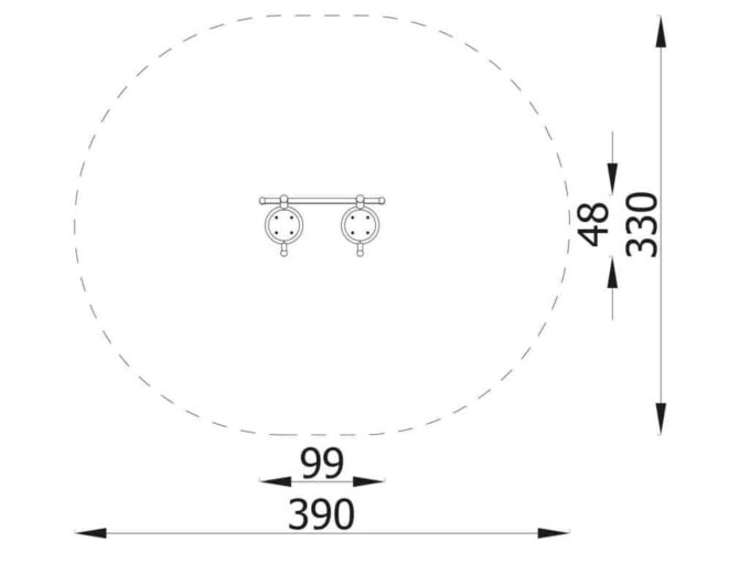 - Verankerung: Wippgerät 60 cm unterhalb der Bodenfläche verankert. Für mehr Stabilität ist ein Betonfundament erforderlich.