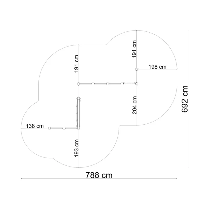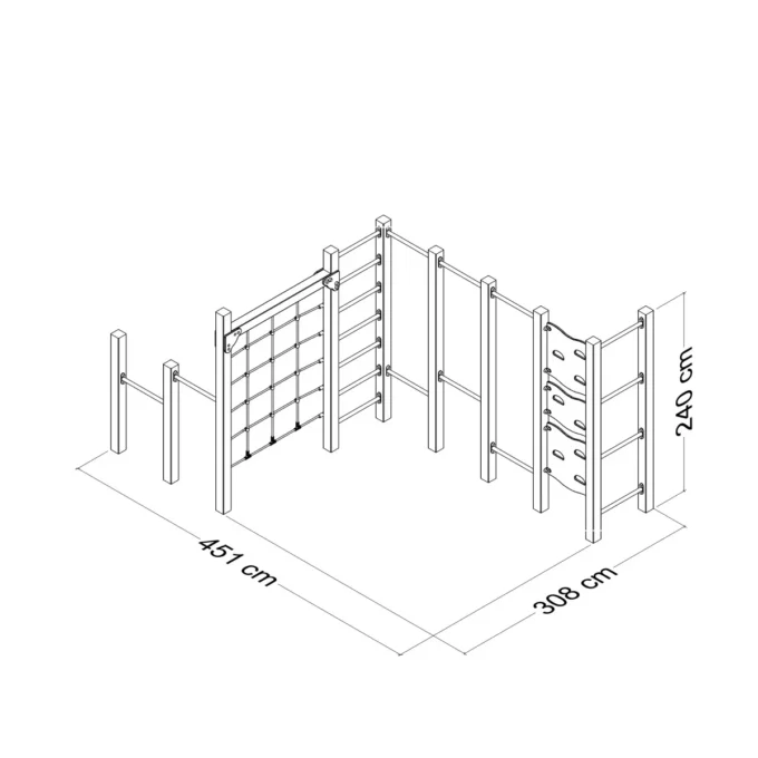 - Maße des Parkour-Geräts (L x B x H): 451 x 308 x 240 cm